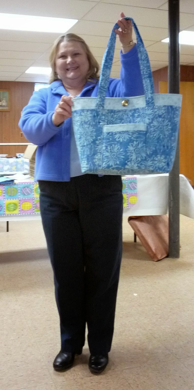 Helen made her Penny Sturges tote with Superior's batting alternative. The pattern is called "Pocket Parade".